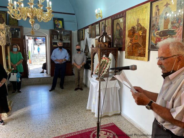 Το πρωί στον ιστορικό ενετικό Ιερό Ναό Κοιμήσεως της Θεοτόκου (Κάτω Παναγία) της Ενορίας Μαρωνιάς Σητείας ο Σεβ. Μητροπολίτης Ιεραπύτνης και Σητείας κ. Κύριλλος χοροστάτησε στην Ακολουθία του Όρθρου και στη συνέχεια ιερούργησε και τέλεσε το Ιερό Μνημόσυνο του Οπλαρχηγού των Κρητικών Επαναστάσεων Καπετάν Σήφη Δερμιτζάκη.