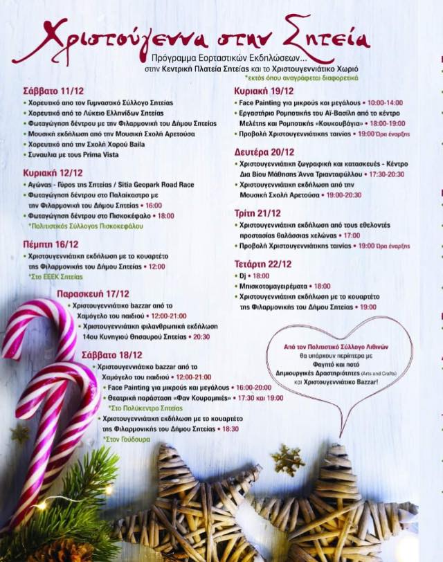 ΣητείαΧΡΙΣΤΟΥΓΕΝΝΑ ΣΤΗ ΣΗΤΕΙΑ. Το Πρόγραμμα των Εκδηλώσεων Post Views: 766 Stavroula14. December 2021 Post Views: 766 Hightlight previous Η Πρόταση των "Συνοδών Βουνού" για την δημιουργία Πολιτιστική Διαδρομή στην παλιά πόλη της Σητείας next Ο ΟΑΣ και ο Δήμος Σητείας στην 1η τεχνική συνάντηση του Δικτύου Ανοικτών Οικομουσείων