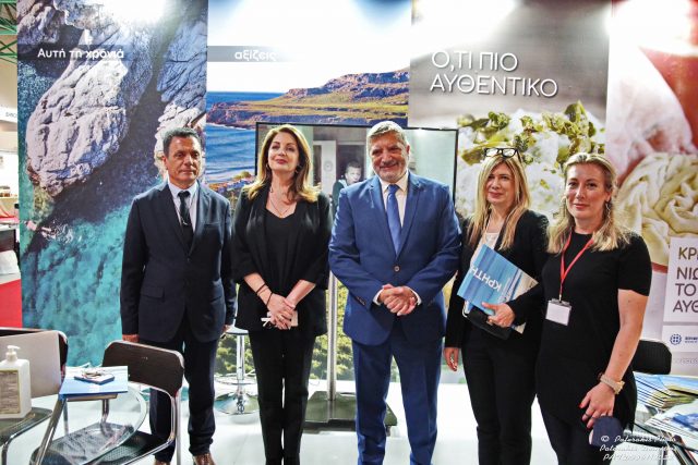 Την έκθεση επισκέφτηκαν η Πρόεδρος του ΕΟΤ κ. Άντζελα Γκερέκου και ο Περιφερειάρχης Αττικής κ. Γιώργος Πατούλης, οι οποίοι δοκίμασαν τοπικά προϊόντα και ενημερώθηκαν για την περιοχή.