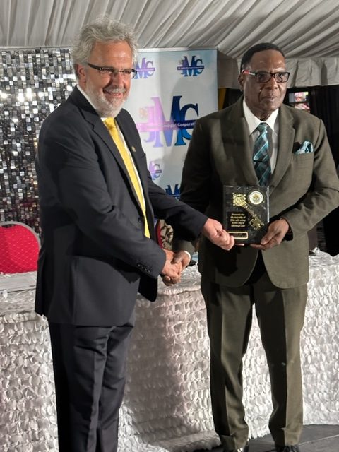 Ο Δήμαρχος Σητείας κ Γιώργος Ζερβάκης κατά τη διάρκεια της εκδήλωσης παρέλαβε το χρυσό κλειδί της πόλης του Μοντέγκο Μπέι και τιμητική πλακέτα από τον Δήμαρχο της πόλης Leeroy Williams.