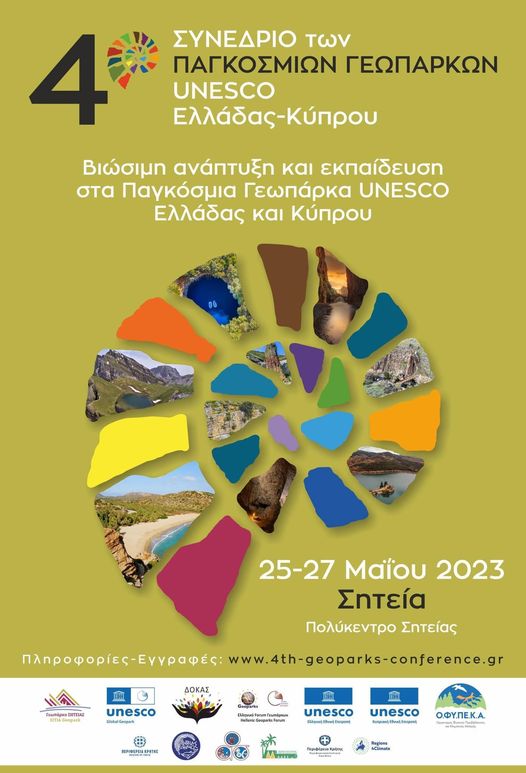 Το 4ο Διεθνές Συνέδριο Παγκόσμιων Γεωπάρκων UNESCO Ελλάδας και Κύπρου, με τίτλο «ΒΙΩΣΙΜΗ ΑΝΑΠΤΥΞΗ ΚΑΙ ΕΚΠΑΙΔΕΥΣΗ ΣΤΑ ΠΑΓΚΟΣΜΙΑ ΓΕΩΠΑΡΚΑ UNESCO ΕΛΛΑΔΑΣ – ΚΥΠΡΟΥ», θα πραγματοποιηθεί στη Σητεία, στις 25 έως 27 Μαΐου 2023.