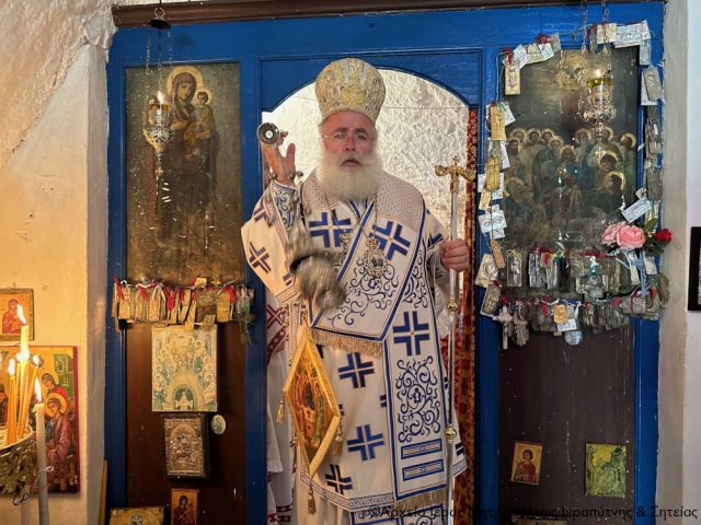 Ο Σεβ. Μητροπολίτης Ιεραπύτνης και Σητείας κ. Κύριλλος χοροστάτησε κατά την ακολουθία του Όρθρου και στη συνέχεια ιερούργησε, κήρυξε επίκαιρα τον θείο λόγο και στο τέλος ευλόγησε τους προσφερόμενους άρτους στην είσοδο του πανηγυρίζοντος ναού.
