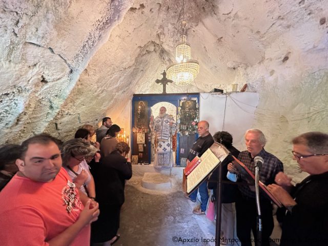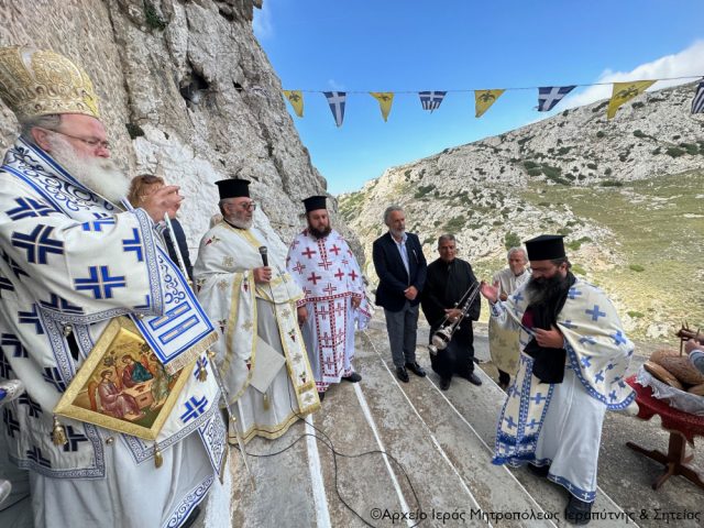 Με τη δέουσα λαμπρότητα και ιεροπρέπεια εορτάστηκε τη Δευτέρα 5 Ιουνίου 2023 η εορτή του Αγίου Πνεύματος στον φερώνυμο ιερό σπηλαιώδη ναό της Ενορίας Αρμένων Σητείας, που βρίσκεται στην είσοδο του μοναδικής φυσικής ομορφιάς φαραγγιού των Περβολακίων και σύμφωνα με την τοπική παράδοση κτίσθηκε μετά τη φανέρωση της θαυματουργού εικόνας σε μία πιστή, που έβοσκε τα πρόβατά της.