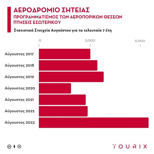 Σύμφωνα με ενημέρωση από το Συνεργατικό Δίκτυο Τουρισμού Δήμου Σητείας και τον σύμβουλο τουρισμού Σταύρο Κεφάλα, 6.200+ οι προγραμματισμένες αεροπορικές θέσεις προς το αεροδρόμιο Σητείας τον Αύγουστο από προορισμούς του εσωτερικού. +125% / 3.500 θέσεις σε σχέση με πέρυσι Ξεπερνώντας κατά πολύ τις 3.682 προγραμματισμένες αεροπορικές θέσεις του Αυγούστου του 2019 που ήταν η επόμενη καλύτερη επίδοση των τελευταίων 7 ετών! 3.500 επιπλέον αεροπορικές θέσεις από την αγορά του εσωτερικού φέτος τον Αύγουστο σε σχέση με...