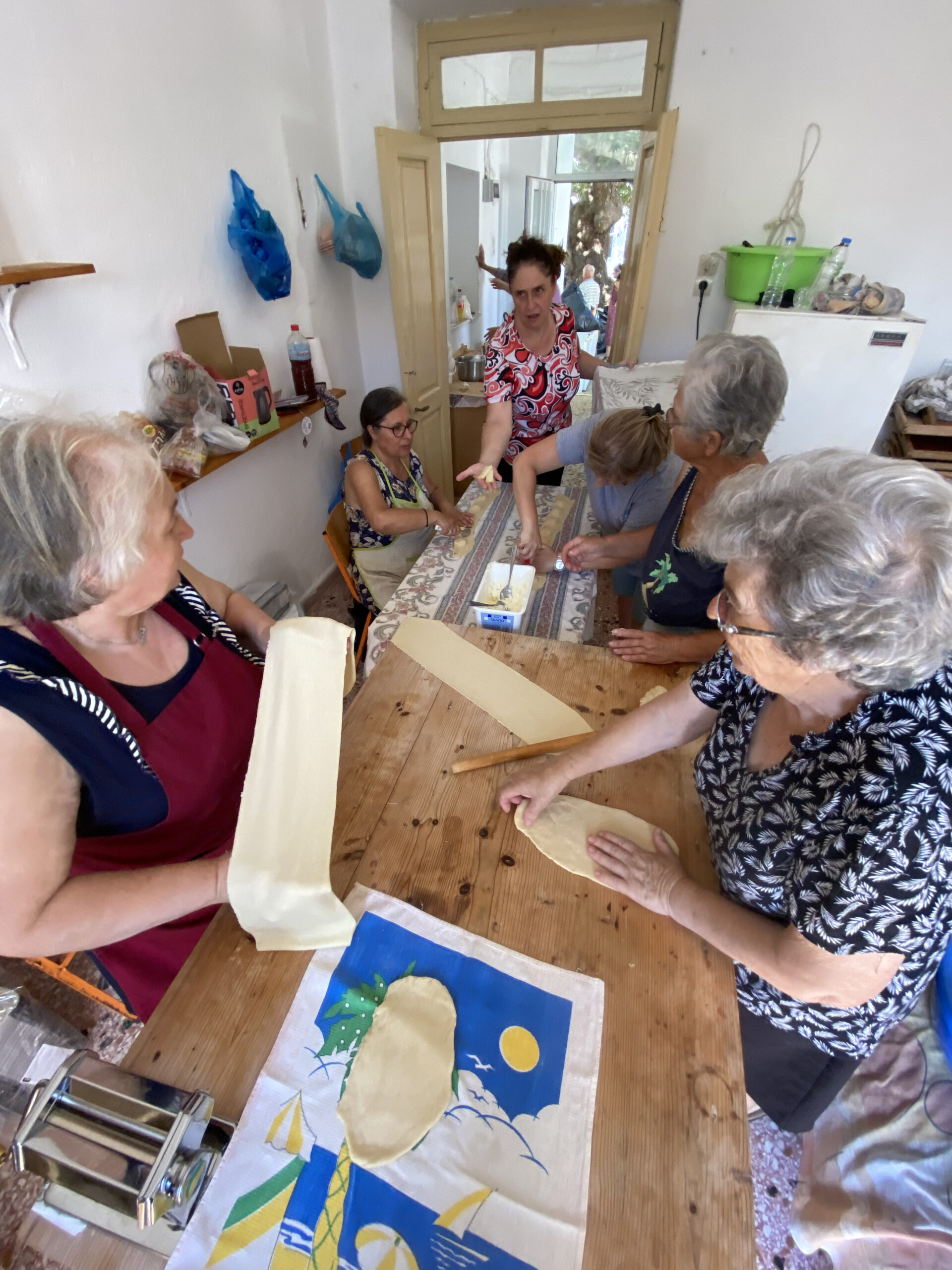 Παρόλο που οι δουλειές είναι πολλές βλέπεις τη χαρά στα πρόσωπα τους. Βλέπεις τη διάθεσή τους να γίνουν όλα όπως πρέπει και ακόμη καλύτερα. Η κυρία Αναστασία στέλνει τον εγγονό της στο σπίτι, για να μας φέρει ξεροτήγανα που τα έχουν ήδη ετοιμάσει, τυλιγμένα και δεμένα με φιόγκο. Δεν ξέρω για πιο λόγο, αλλά, δεν μου έφερε ούτε ένα, ούτε δύο. Πέντε! Δεν μείναμε στο πανηγύρι. Όμως, έχω τη βεβαιότητα ότι θα ήταν ένα από τα πιο όμορφα καθώς, όλα ετοιμάζονταν εκεί, από τους ίδιους τους διοργανωτές. Έβλεπες ότι ο καθένας έκανε ό,τι μπορούσε. Κάποιοι άλλοι, με σκούπες στα χέρια, καθάριζαν το χώρο από τα πεσμένα φύλλα του πλατάνου.