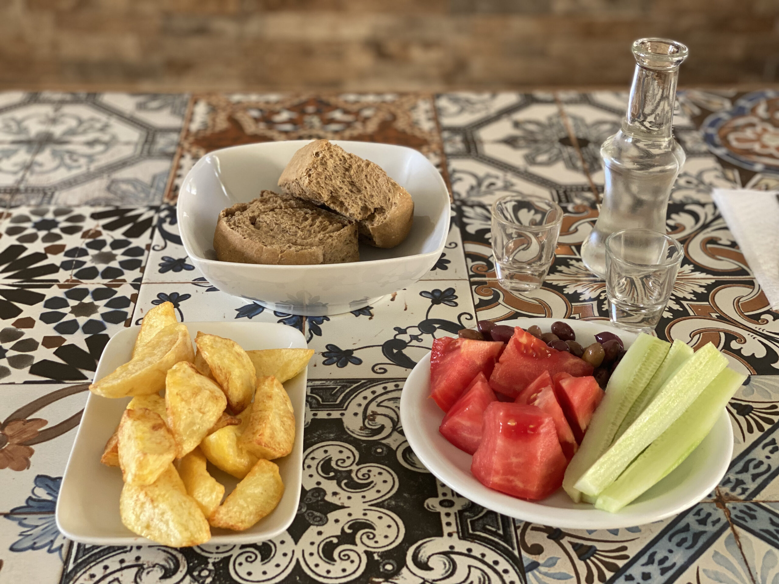 Το εξαιρετικό παρθένο ελαιόλαδο, σε συνδυασμό με τα φρέσκα λαχανικά μας δίνει τη δυνατότητα να δοκιμάζουμε ίσως τις πιο νόστιμες σαλάτες. Από την άλλη, αυτή η μαεστρία του μεζέ, βρίσκει εδώ στο Λασίθι όλη τη σημασία του. Σε κάθε γωνιά, σε κάθε στάση αυτού του ταξιδιού, θα υπάρχει πάντα κάτι για να δοκιμάσεις και κάπως έτσι να συνοδεύσεις ένα δροσιστικό ποτό, ή γιατί όχι, αν το τραβάει η όρεξή σας, και δεν οδηγείτε, και μία ρακή. Δοκιμάσαμε τις καταπληκτικές νεράτες, τις τηγανητές πίτες δηλαδή, που έφτιαξε για εμάς μία εμπνευσμένη μαγείρισσα, η Διαμάντη Δασκαλάκη, στο μαγαζί της, στο παραλιακό μέτωπο της Σητείας, στο Kafe Café. Φυσικά και δοκιμάσαμε χοχλιούς, στο Ρακί Μεζέ, στη Συκιά. Ένα μαγαζί που αξίζει να το ψάξετε καθώς εδώ ο Μιχάλης Σολιδάκης, κάνει καλή δουλειά. Δοκιμάσαμε, ένα γεμάτο γεύση κατσίκι κοκκινιστό με σκιουφιχτά, ομελέτα με στάκα, και φυσικά αντικριστό.