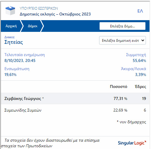OΣητείαΔημοτικές Εκλογές 2023: Αποτελέσματα για το Δήμο ΣητείαςPost Views: 1,047 Stavroula8. October 2023 Post Views: 1,047 Hightlight previous Γιώργος Ζερβάκης: Ο τόπος χρειάζεται συνεργασίες και ενότητα next Αποτελέσματα για το Δήμο Σητείας στο 27,5%