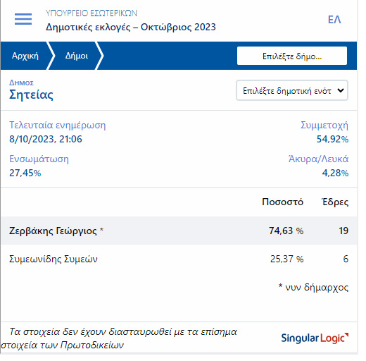ΣητείαΑποτελέσματα για το Δήμο Σητείας στο 27,5%Post Views: 1,290 Stavroula8. October 2023 Post Views: 1,290 previous Δημοτικές Εκλογές 2023: Αποτελέσματα για το Δήμο Σητείας next Γιώργος Ζερβάκης: Συνεχίζουμε δυναμικά για την επόμενη πενταετία