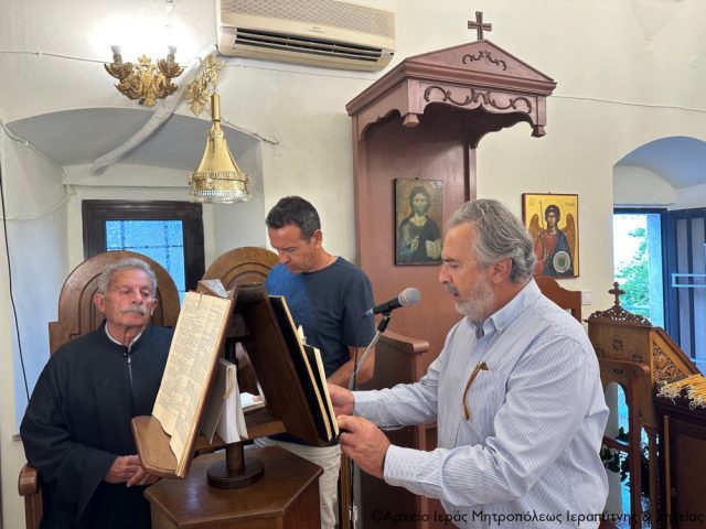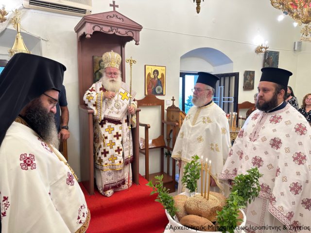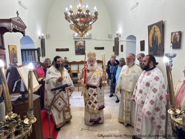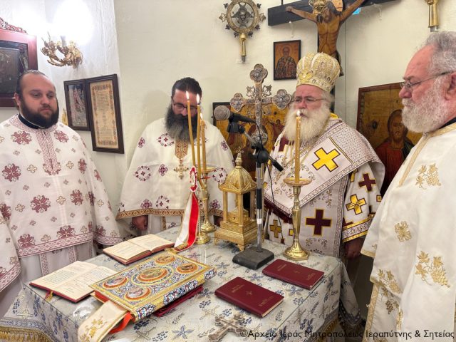 Συλλειτούργησαν ο Πρωτοσύγκελλος Αρχιμ. Αμβρόσιος Σκαρβέλης, ο συνταξ. Εφημέριος π. Μιχαήλ Συντυχάκης, ο κατ᾽ ανάθεσιν Εφημέριος της Ενορίας π. Γεώργιος Μονιός, Εφημέριος Ενορίας Χανδρά, και ο Διάκονος Θεμιστοκλής Μπεϊνάς.