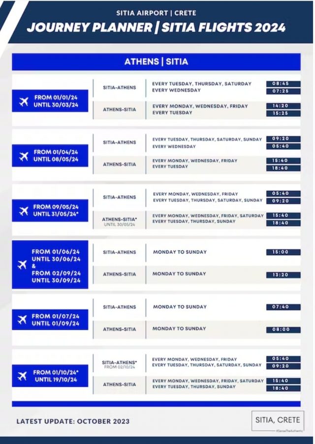 Πρόγραμμα αεροπορικών δρομολογίων για το 2024 στη γραμμή Αθήνα – Σητεία: