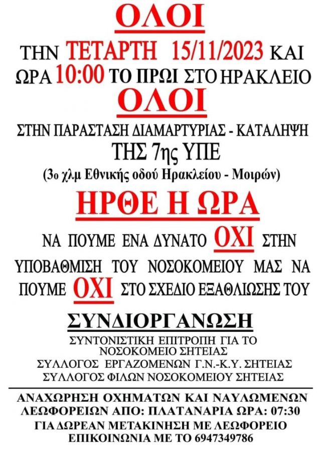Δημόσιας Ποιοτικής και Δωρεάν Υγείας για τους Σητειακούς πολίτες και όχι