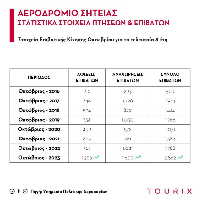 και τον Σύμβουλο Τουρισμού κ Σταύρο Κεφάλα, ανακοινώθηκαν τα επίσημα στοιχεία της επιβατικής κίνησης για τα αεροδρόμια της Ελλάδας για τον Οκτώβριο 2023 από την Υπηρεσία Πολιτικής Αεροπορίας.