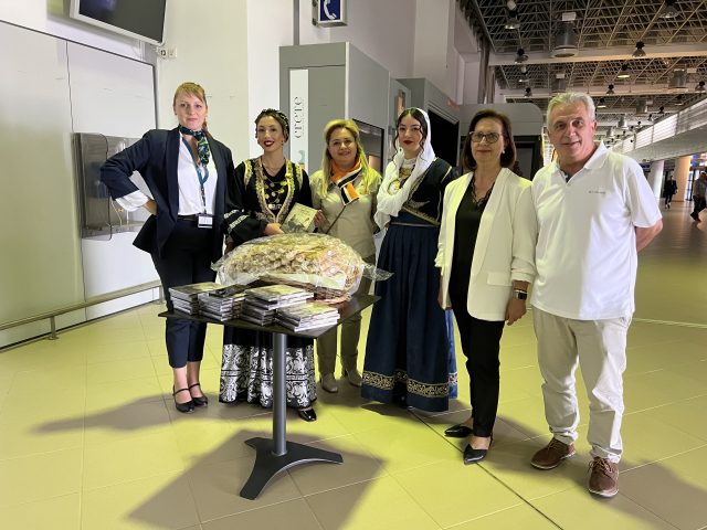 Με πρωτοβουλία του Δήμου Σητείας και της ΜΑΔΕΣ, προσφέρθηκε συμβολικά στους επιβάτες της πρώτης πτήσης τσάρτερ της φετινής σεζόν, παραδοσιακό κέρασμα, και ως αναμνηστικό, μια εξαιρετική μουσική συλλογή με τοπικές κοντυλιές.