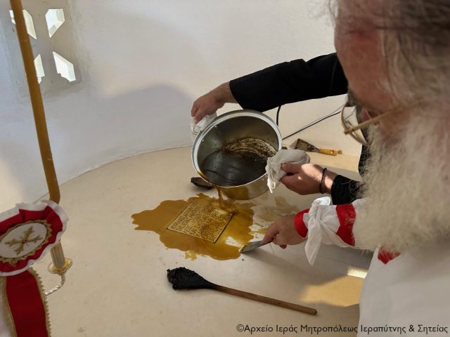 Το πρωί του Σαββάτου 24 Αυγούστου ο Σεβ. Μητροπολίτης κ. Κύριλλος χοροστάτησε κατά την ακολουθία του Όρθρου, προέστη στη λιτάνευση των αγίων λειψάνων πέριξ του ιερού ναού και στη συνέχεια προεξήρχε της τελετής των Ιερών Εγκαινίων και του καθαγιασμού της Αγίας Τράπεζας, και τέλεσε την πρώτη Θεία Λειτουργία στην καθιερωθείσα Αγία Τράπεζα του ιερού ναού.
